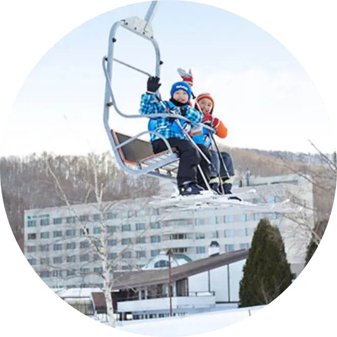 グリーンピア大沼スキー場には、ペアリフトが2台と、お子様でも安心してご利用いただける無料のスノーエスカレーターがございます。